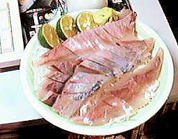 同じつばすでも、2種類存在する。このあたりが魚のむつかしいところだ。一つは釣りのつばす。さしみにするなら、そりゃ、こっちのほうがいい。12時間くらいは活かっている。もう一つは網のつばす。こっちは数時間しか活かっておらず、普通焼いたり煮たりして食べる。見分けるのは慣れれば容易だ。網のつばすは刺し網で獲るので、首のところが擦り傷のような感じになって全体的に傷んだ感じがどうしてもするから、分かる。釣りのつばすは傷がなく、みるからにピカピカしている。